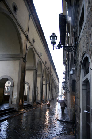 У флорентийцев – совершенно особая культура отношения к зонтам. Видимо, дожди льют здесь всю зиму, и потому зонты продают в неимоверных количествах разного рода негры и китайцы, готовые торговаться, сбрасывать цену, а затем, если покупатель уходит, догнать его и снова уступить. Зонты торчат из урн и мусорных баков. Зонты оставляют при входе в лавки. Зонты просто валяются на тротуарах. Так что мы, люди свободного мира, смотрелись в своих шляпах очень независимо.