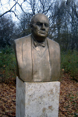 Гулять по городу, восхищаться и фотографироваться совсем не хотелось. Мы слонялись вокруг декоративных дворцов, по парку, разбитому на некогда осушённых болотах, пробовали местный глинтвейн (я нашёл, что вкус его тот же, но температура явно не дотягивает до высоких немецких стандартов). Было скучно. Неподалёку от места, где кто-то впереди меня идущий вступил в недосушенное болото, моё внимание привлёк памятник Черчиллю. Его кривая ухмылка будто говорила: "да, неплохо мы тут отбомбились в 45-м".